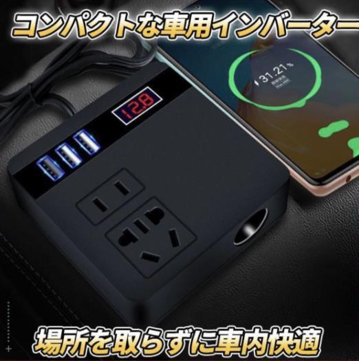インバーター◇車載用 乗用車など◇12Vシガーソケット◇USB 5v急速充電&AC110V コンセント 変換 收藏