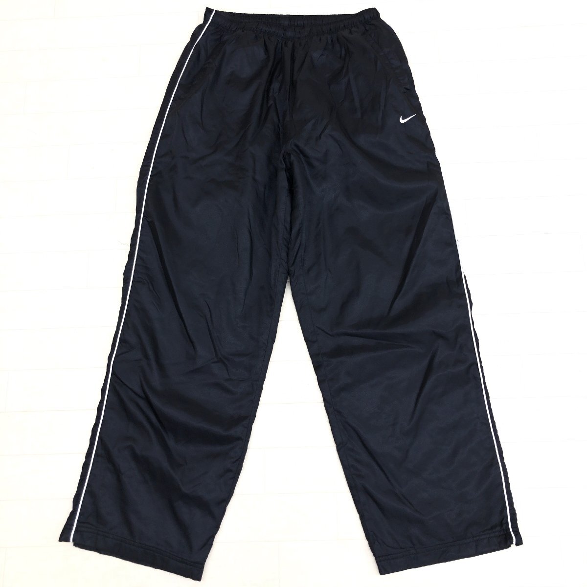 ●美品 NIKE ナイキ ロゴ刺繍 中綿入り 裏キルティング ナイロン パンツ L 黒 ブラック ウインドブレーカー トラックパンツ メンズ 紳士 收藏