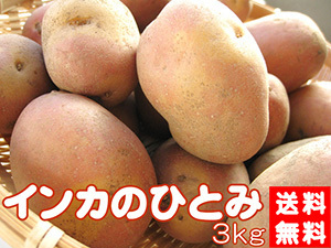 | 保存方法 | 要冷蔵 購入後はお早めにお召し上がり下さい インカのひとみは甘く、美味しいのですがインカのひとみは芽が出やすく、表面に若干のキズやシワ、くろずみ、中に空洞があることをご了承くださいませ。美味しさにまったく影響はございません。 この品種は皮がシワになりやすく、堀たてでも芽が出やすいので到着後は必ず冷蔵庫の野菜庫に保存していただき、こまめに芽取りして保存して下さい。購入後はお早めにお召し上がり下さい | ||