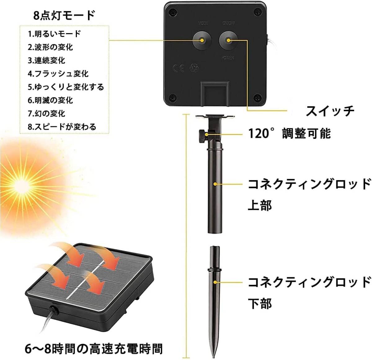 LED イルミネーションライト ソーラーライト 20m 200球 8モード 防水 装飾ライト 新品 未使用 收藏