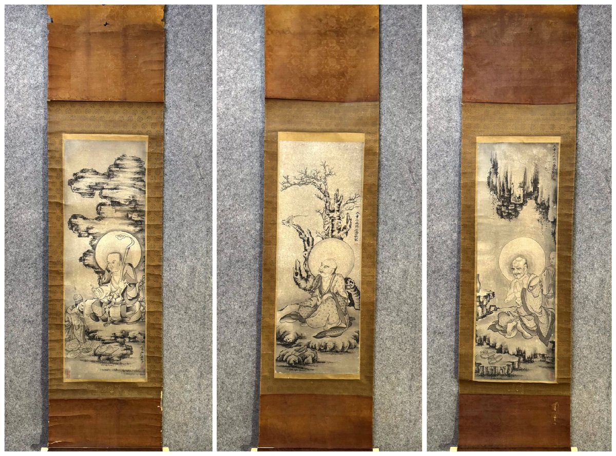 【安】中国清時代画家「石濤書」紙本「羅漢図三条屏」掛軸 共箱 中国画 墨寶妙品 中国書道 古美術 430 サイズ(約寸) |