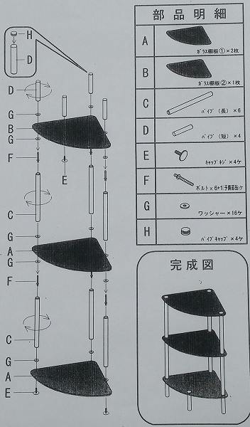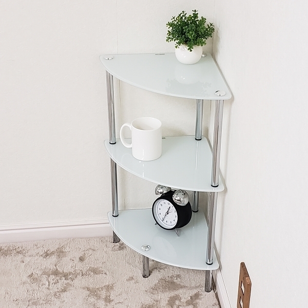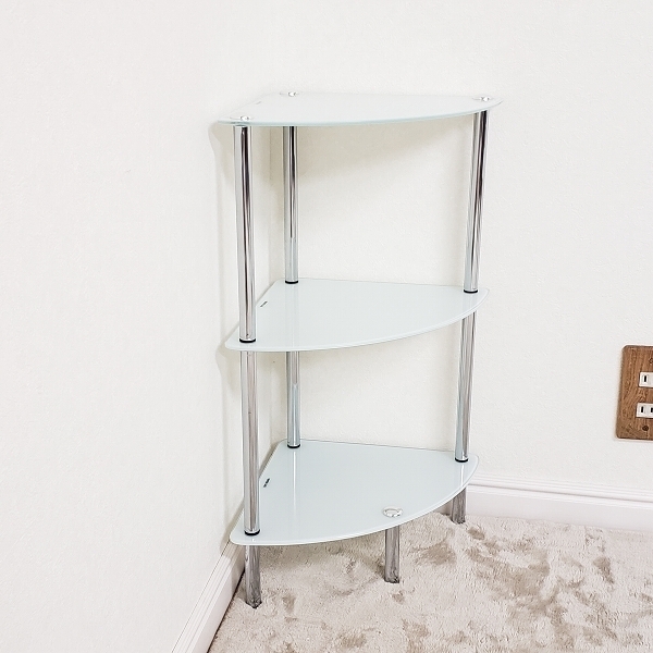 ガラスラック コーナータイプ ホワイト色(白色) 送料無料(北海道・沖縄・離島へは発送不可) お客様による組立が必要です。SMJ-102WH 收藏