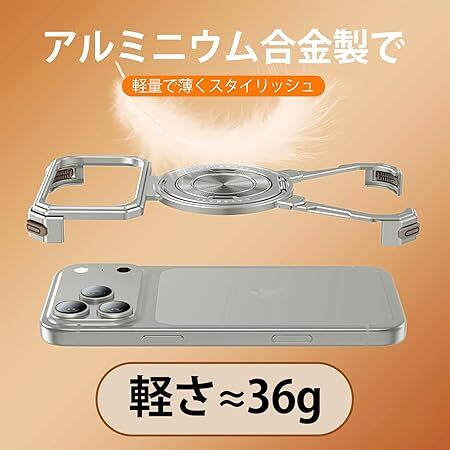 【爪ケース 360°回転スタンド】NIFBANG iPhone 17 Pro Max 用のバンパーケース アルミバンパー リングマグネット搭載 シルバー 1028 收藏
