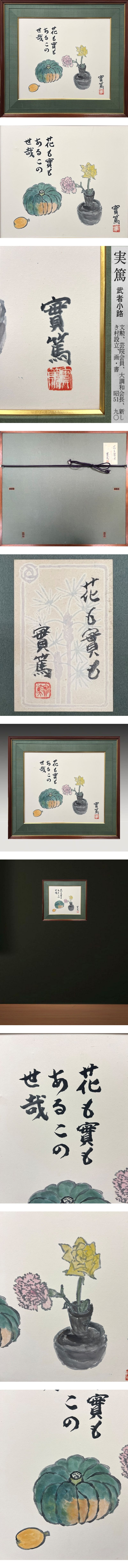 【FCP】 真作保証 武者小路実篤 紙本彩色画10号 「花も實も」共シール 文化勲章受章 名誉都民 日本芸術院会員 h 收藏