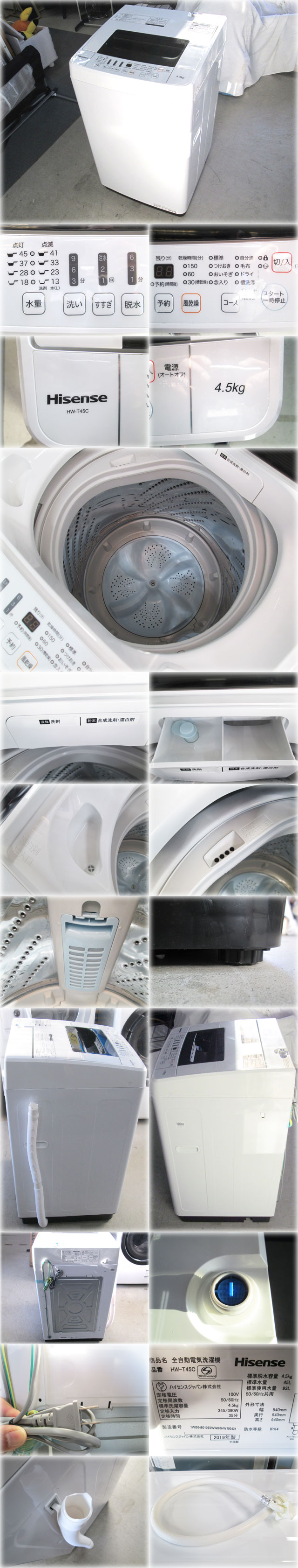 ハイセンス 全自動洗濯機 HW-T45C 洗濯・脱水4.5kg 独自パルセーター ステンレス槽 風乾燥 Hisense 【長野発】 收藏