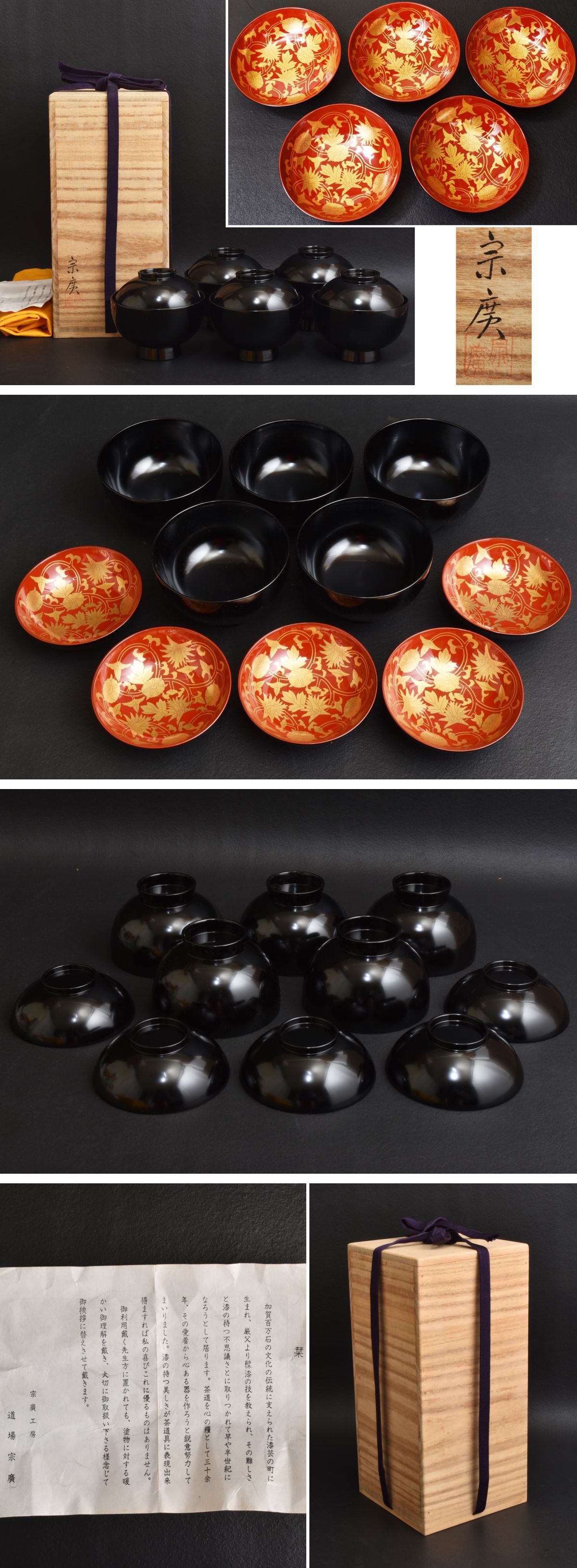 6195 道場宗廣 吸物椀 本金蒔絵 5客 美品 共箱 收藏