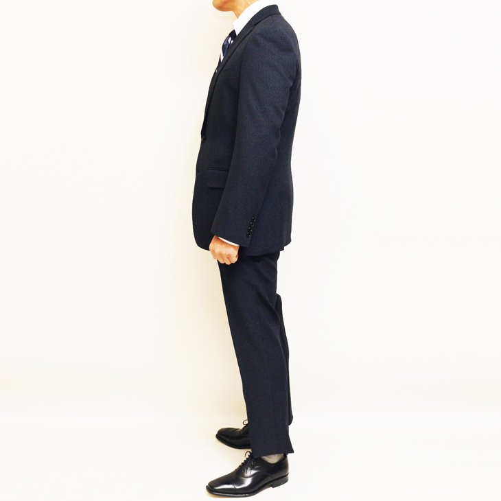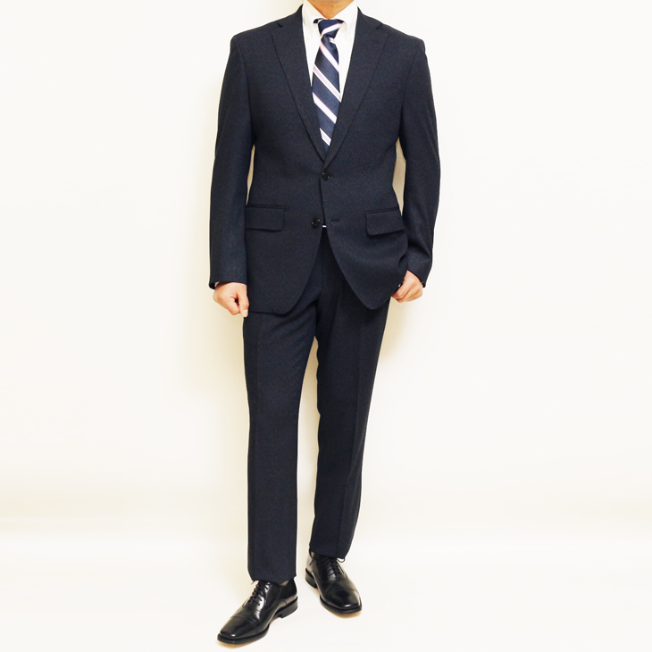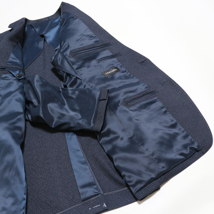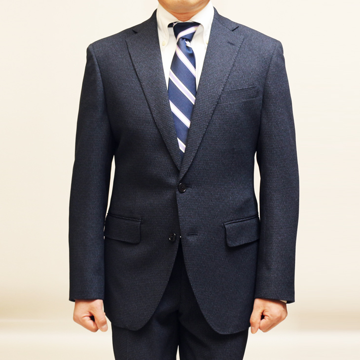 ちょっと訳アリ品 SALE 新品 春秋冬 VERSARE 濃紺ネイビー杢小柄 2つボタンノータック スーツ やや細め型 BB6 收藏