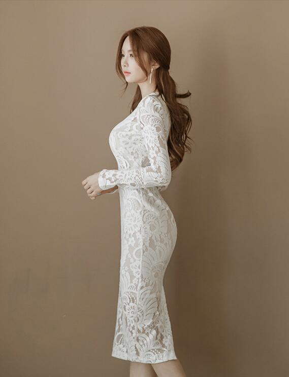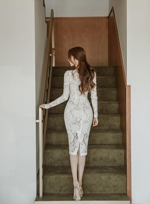 CHQ437#ワンピース ladies レディース 美スタイル OL きれいめ 可愛い sexy レース 長袖 收藏
