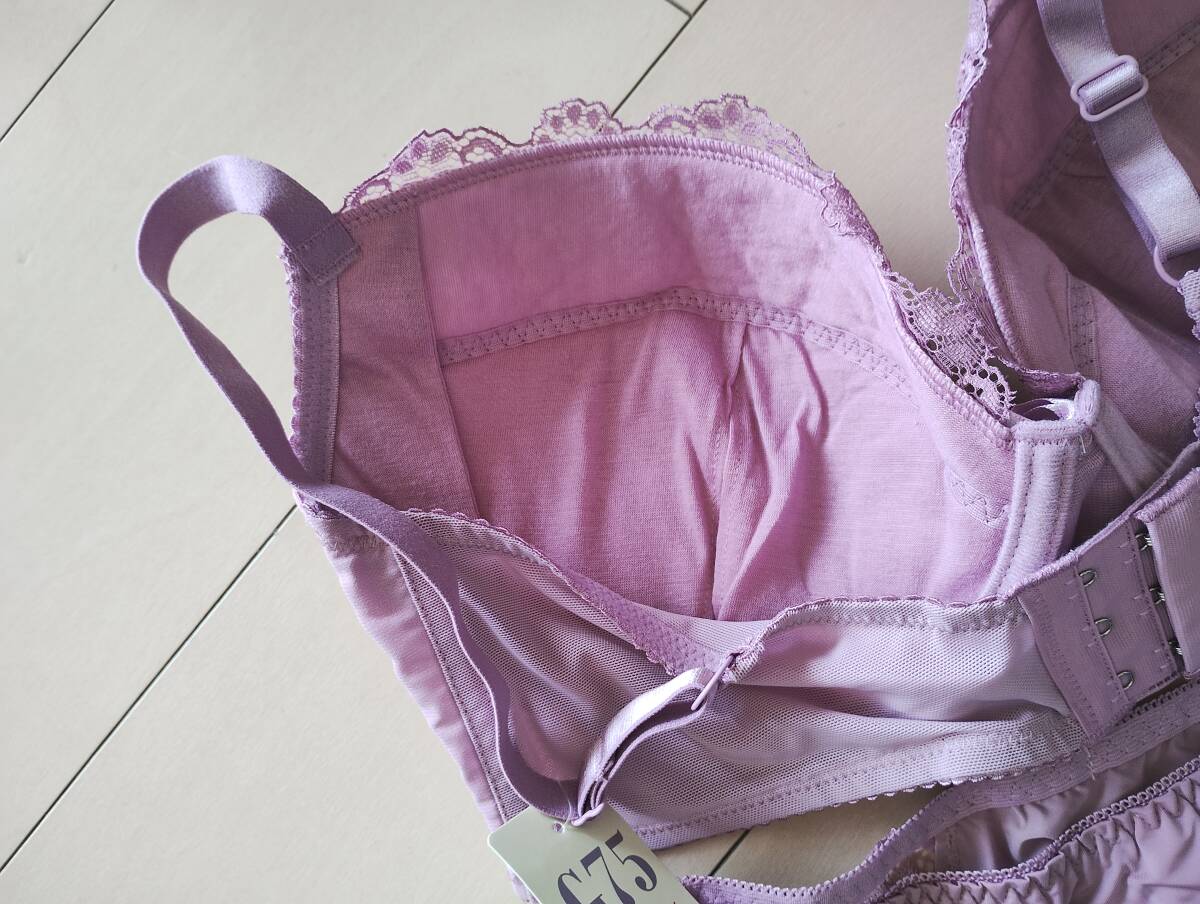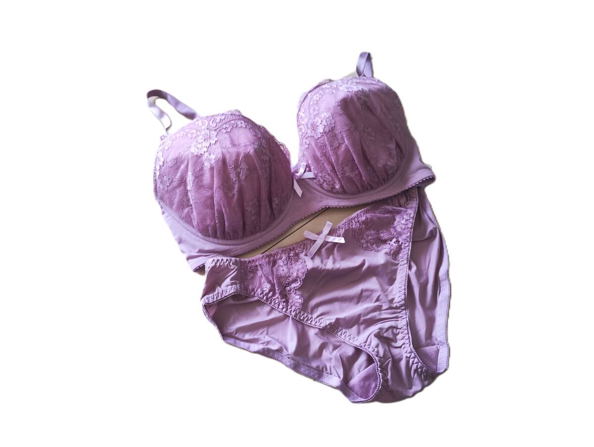 241020 新品 白鳩 wakudoki シンプル レース ブラ ショーツ セット G75 pパープル 大きいサイズ 希少サイズ 着やせ 收藏