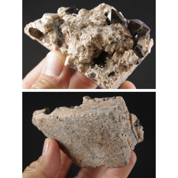 天然黒水晶×長石のクラスター結晶