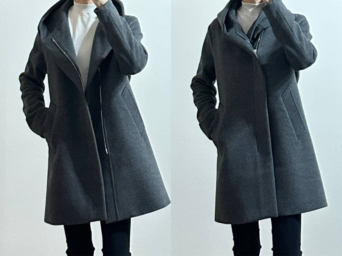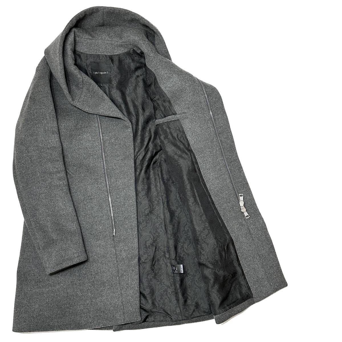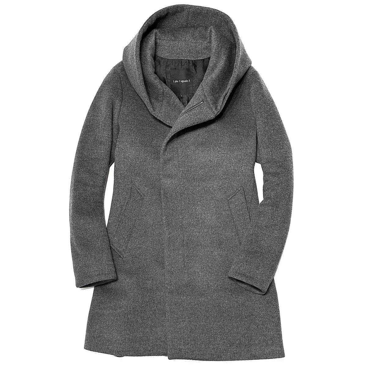 定価16.5万 1piu1uguale3 BEAVER WOOL MELTON WRAP HOOD COAT Ⅴ グレー ラップコート akm wjk ジュンハシモト 收藏