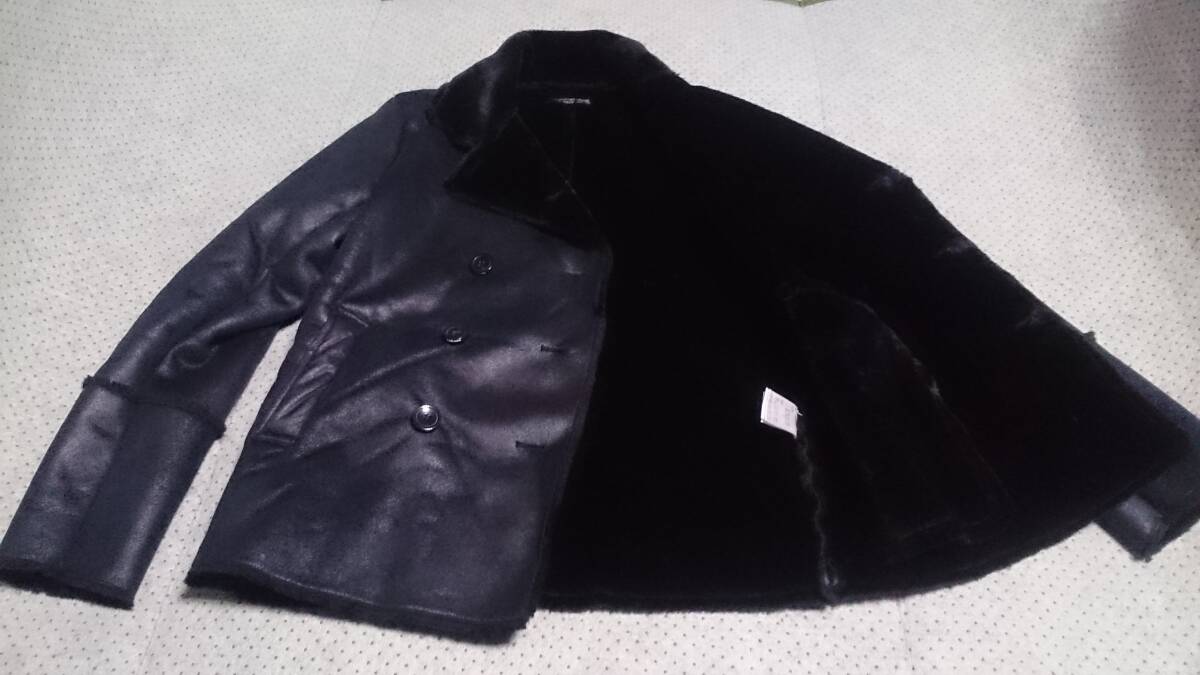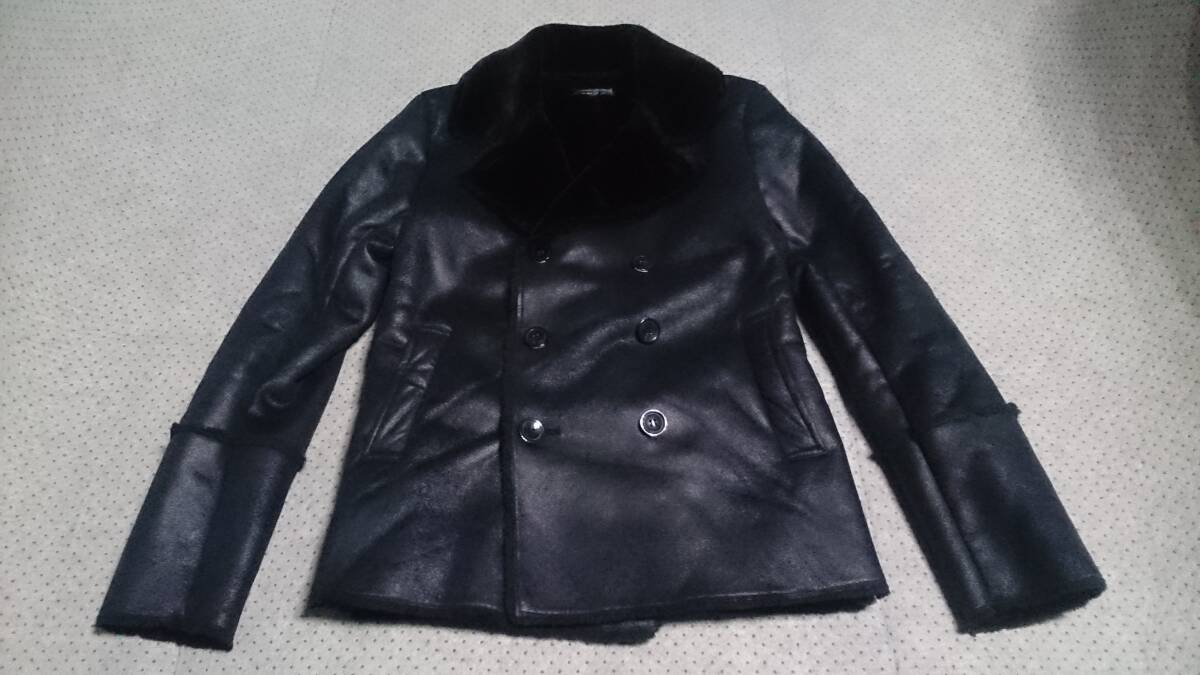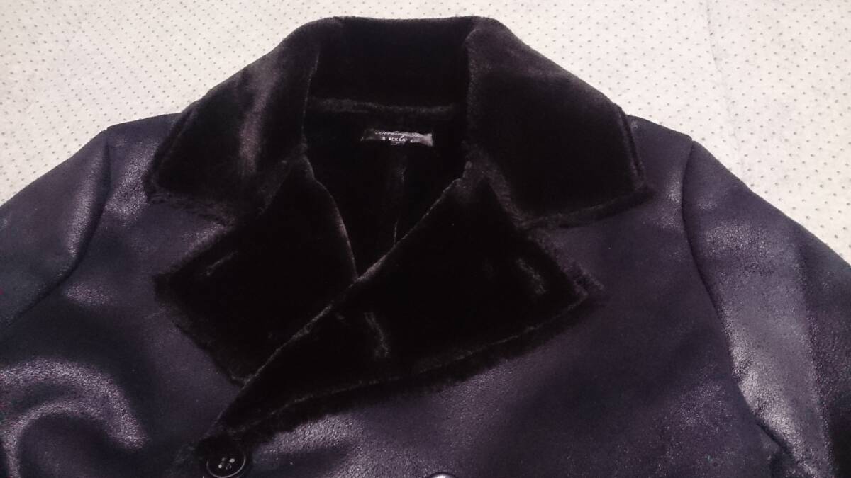 中古 美品 Bernings Sho バーニングスショー 裏ボア スエード/ベロア調 フェイク ムートン スリムフィット ジャケット Pコート 黒 L/実質M 收藏