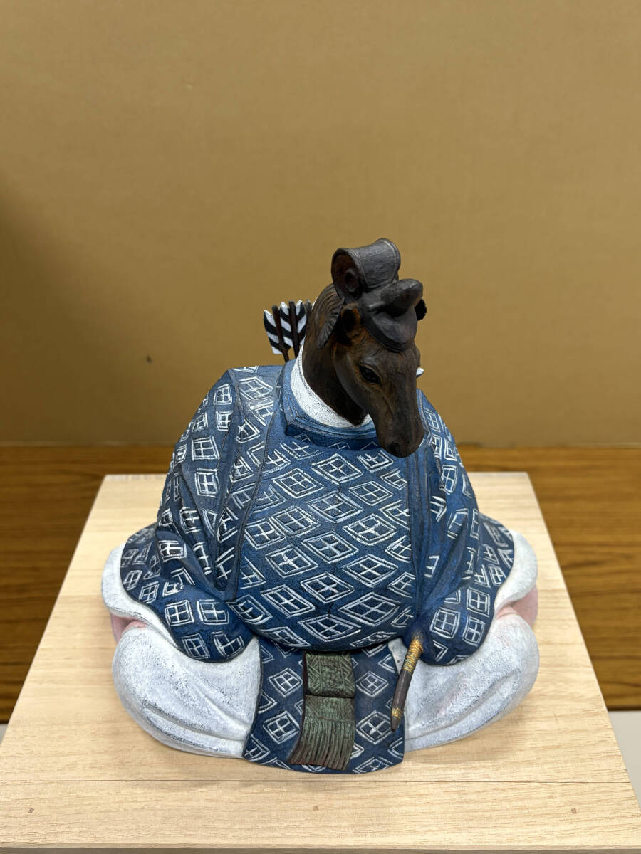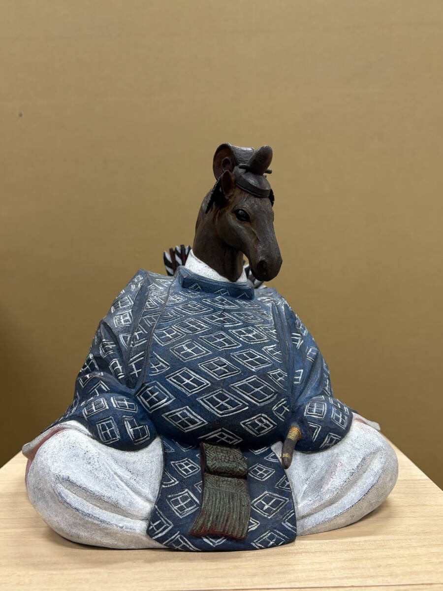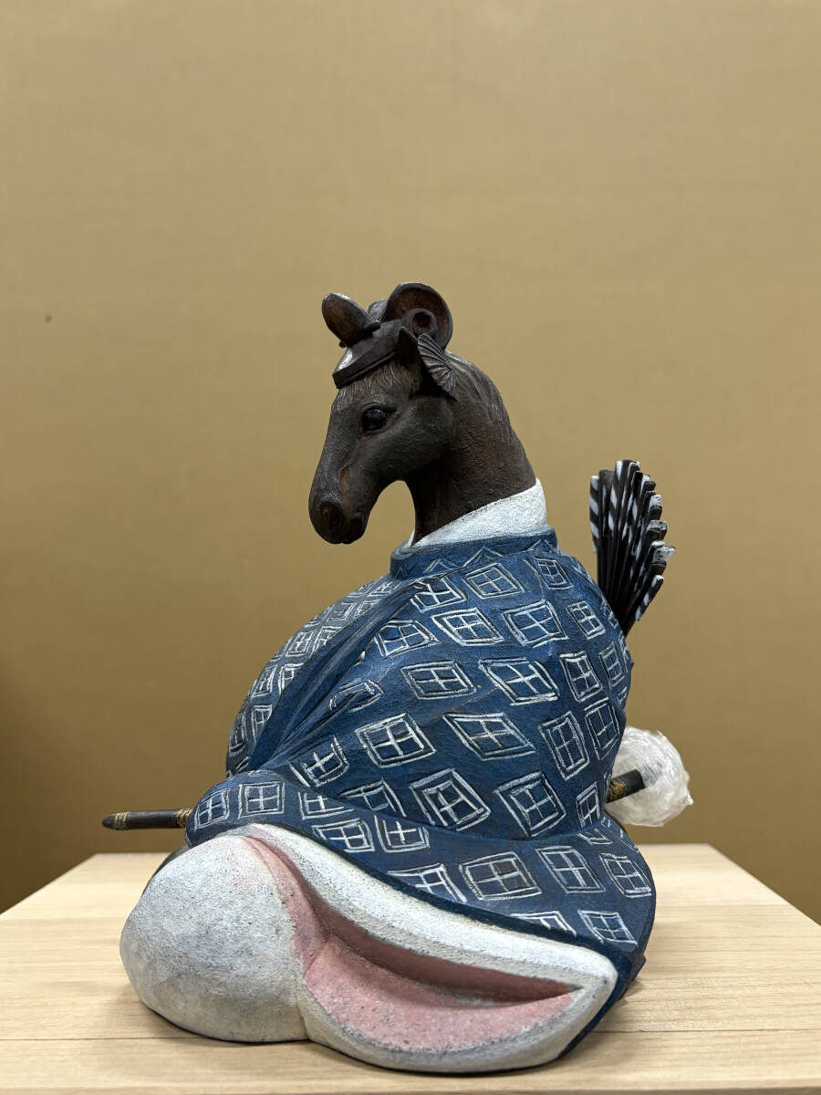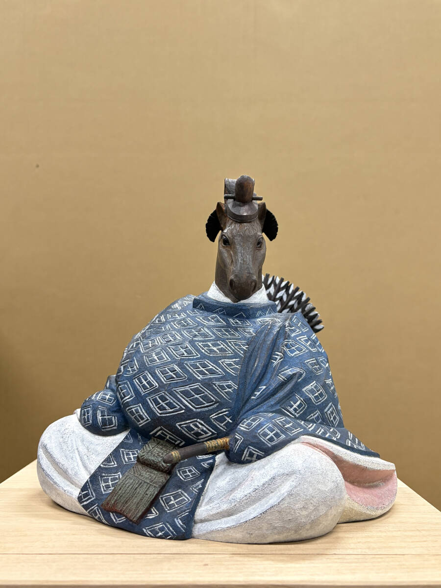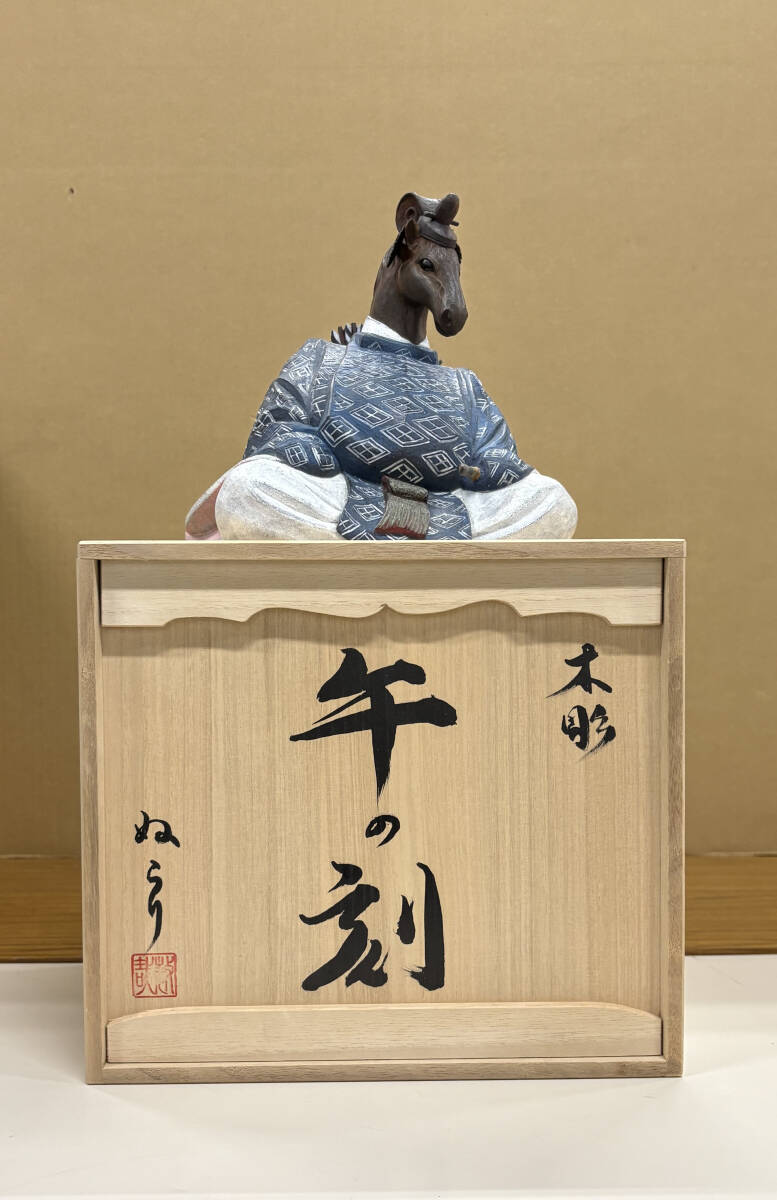 作家物 野桑敏哉(彫房ぬらり) 「牛の刻」 木彫に手彩色 真作 80000円〜 干支 うま 馬 Y-48 收藏