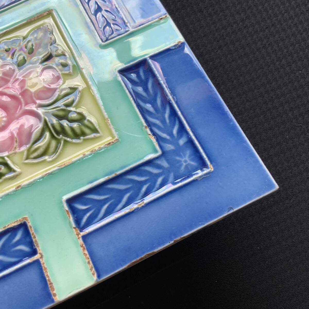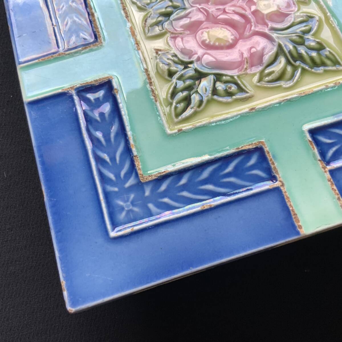 マジョリカタイル 日本製 花柄 希少デザイン 大正~昭和 タイル 美品 -199 收藏