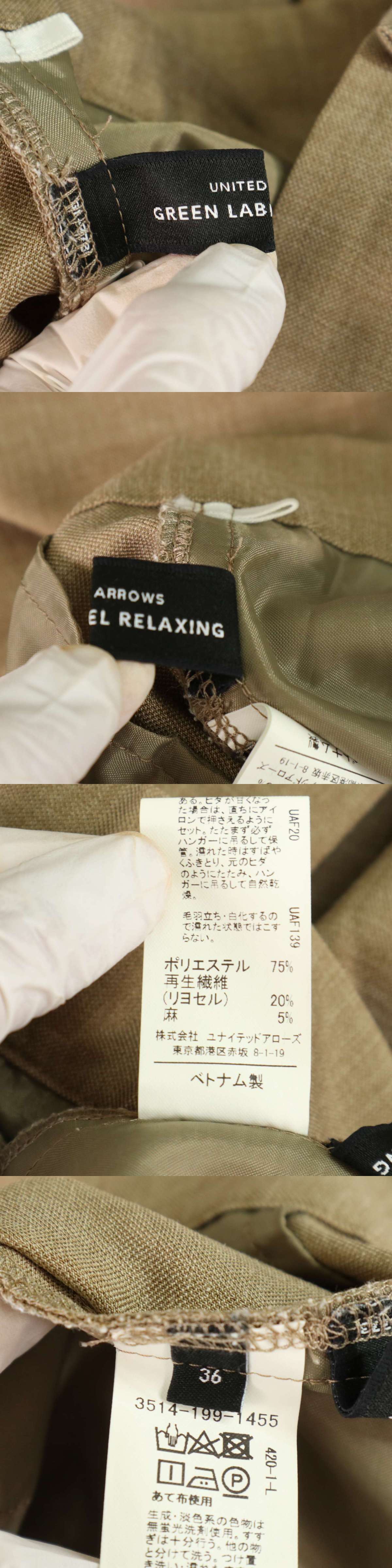 green label relaxing ユナイテッドアローズ 春夏★ リヨセル 麻 ワイド クロップド タック パンツ Sz.36 レディース 收藏
