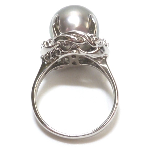 【Pt900】大粒 黒蝶真珠 パール 11mm & ダイヤ 0.11ct リング 13号 プラチナ ダイヤモンド 真珠 新品仕上済 指輪 Platinum Pearl ◇J 收藏