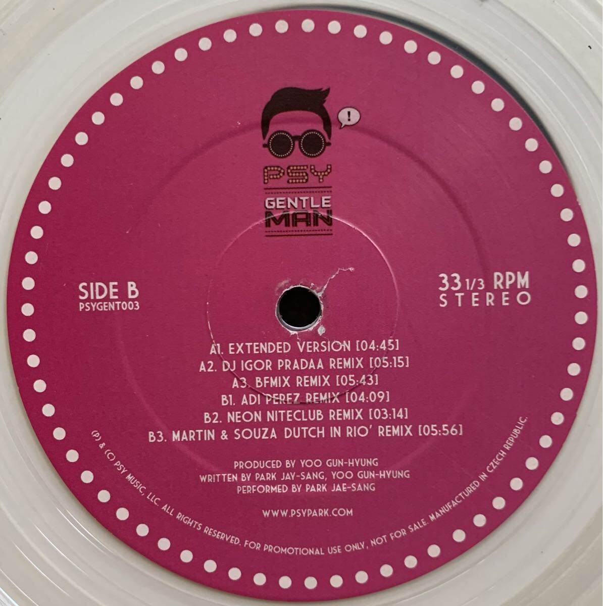 世界的なヒット・シングル「江南スタイル(Gangnam Style)」に続きリリースされ当時、MVが韓国の大手TV局で放送禁止になった「Gentleman」の希少なGermany盤、クリアヴァイナル仕様のリミックスレコードです。| 出价者 | 信用 | 价格 | 时间 |