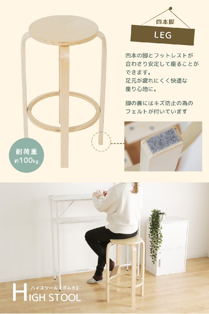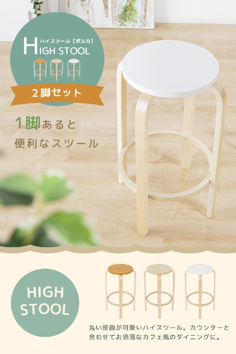ハイスツール チェア 丸型 スツール 2脚セット ハイチェア 幅45cm 木製 木目 軽い 軽量 マルチチェア 收藏