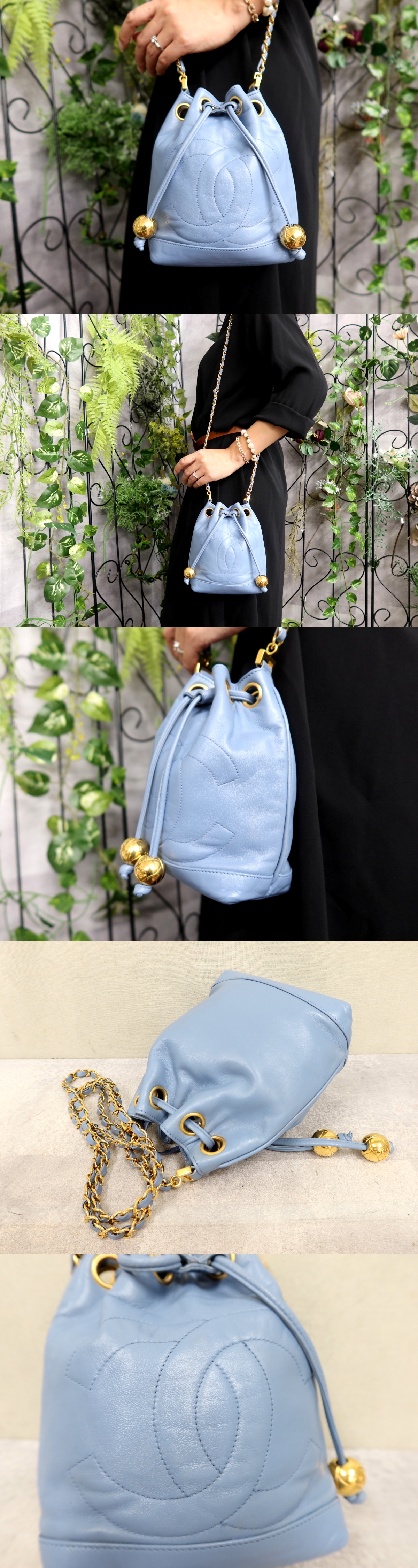 ●超美品●CHANEL シャネル●ココマーク●ラム レザー 本革●巾着 チェーン ショルダー バッグ●ライトブルー●ゴールド金具●Js60700 收藏