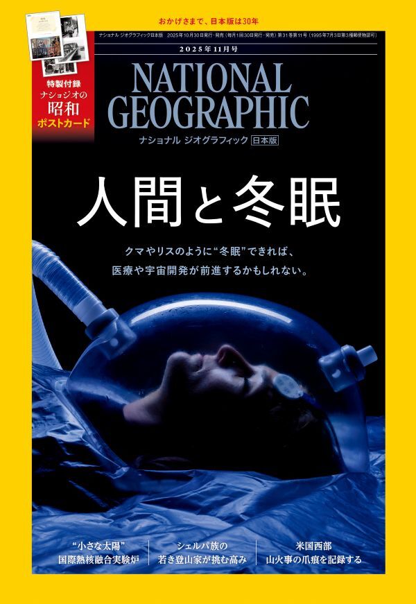 ●ナショナルジオグラフィック2025年11月号「人間と冬眠」特集号 〔特製ポストカード「昭和、あの頃の日本」つき〕中古 送料無料! 收藏