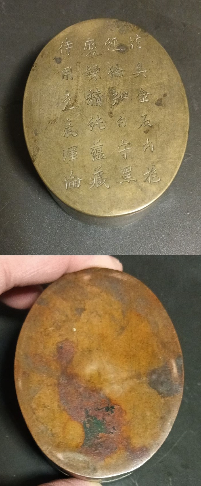 銅製 小箱 墨箱 金工細工 ヴィンテージ 時代物 銅刻 文寳 文寶 文宝 文房具 墨入 蓋物 中国