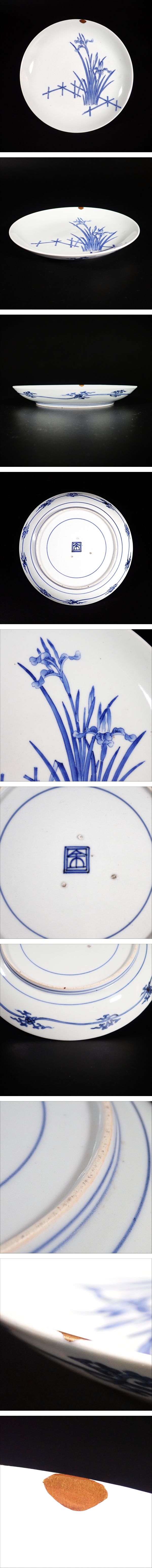 書載品 藍柿右衛門 花菖蒲文 中皿 江戸中期 1670~1690年 水仙 花 柿右衛門 古伊万里 染付 飾皿 インテリア (本物保証) 收藏