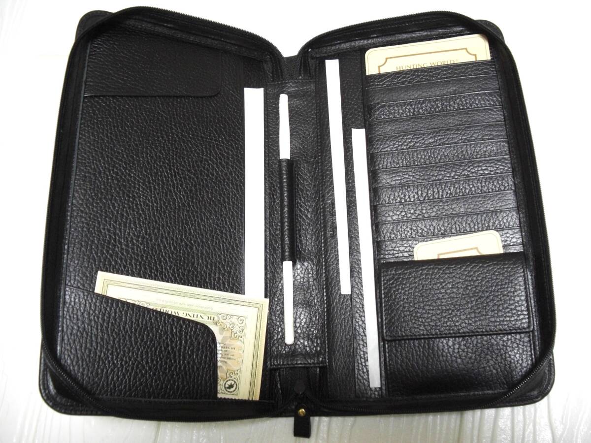★仕様・・・・・①持ち手付き・ファスナー開閉式②小銭入れ1ヶ所③大型ポケット3ヶ所④カードサイズポケット12ヶ所⑤ポケット1ヶ所⑥小切手・領収書・手帳レリーフ等挟み用レザー部分有り⑦ペンホルダー1ヶ所