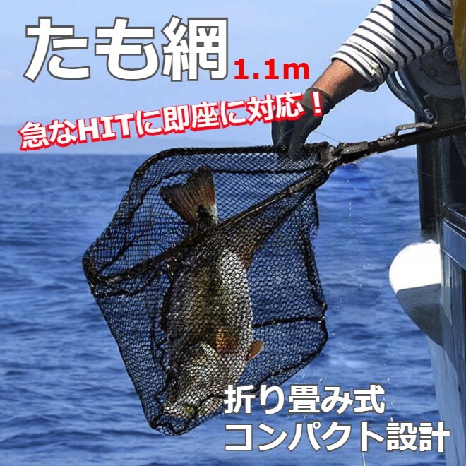 たも網 玉網 ランディングネット フィッシング コンパクト 折りたたみ ワンタッチ 伸縮 1.1M 收藏