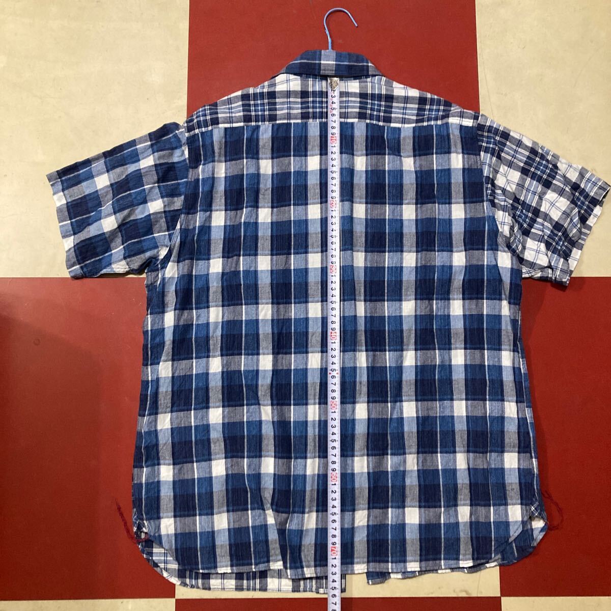 2年位前に新品購入。その後1〜2回ほど着てサイズが合わなくなりクローゼット保管していました。状態は良いと思います。ほとんど着てないのでどなたかいかがですか?ブルーのチェックがクレイジーパターンになっています。派手すぎずこだわりを感じて最高です。希少サイズXL17 1/2 身幅59センチ着丈73センチくらいです。