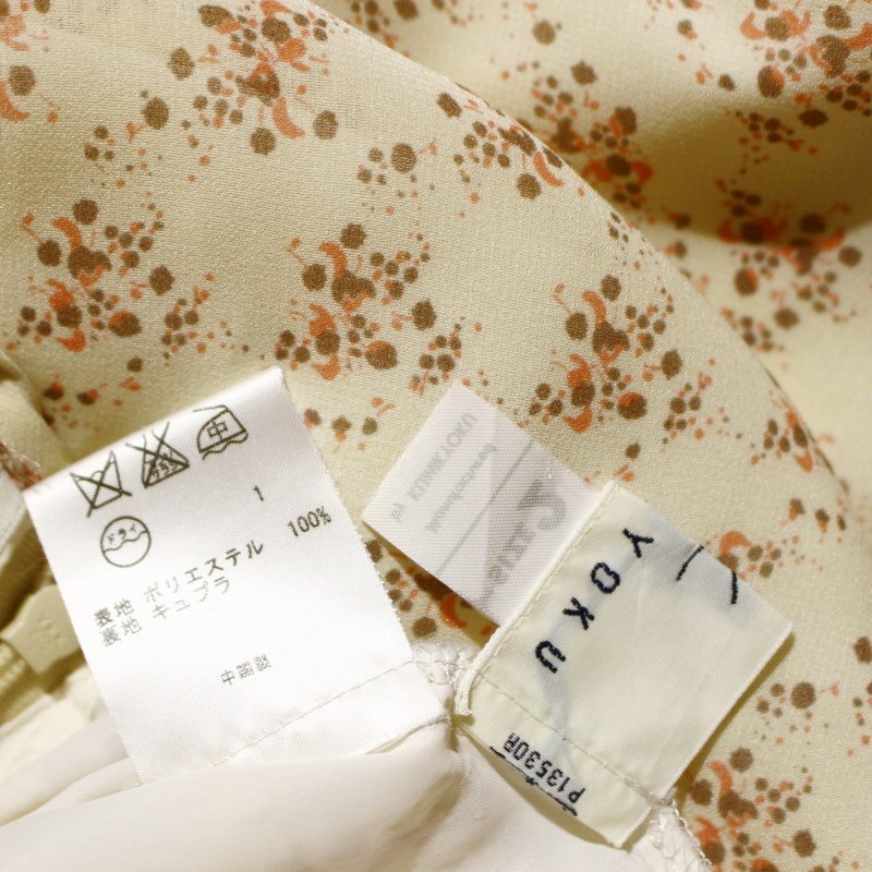 美品 組曲 クミキョク 株) オンワード樫山 春 夏 ドット プリント 柄 シフォン フレアスカート 9号 2 ベージュ オフィス 通勤 スカート