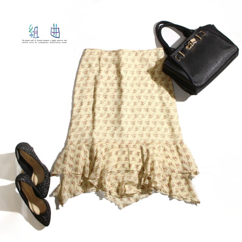 美品 組曲 クミキョク 株) オンワード樫山 春 夏 ドット プリント 柄 シフォン フレアスカート 9号 2 ベージュ オフィス 通勤 スカート 收藏