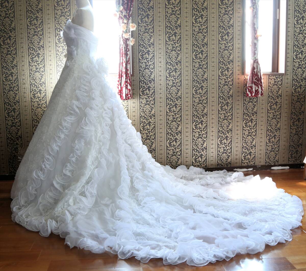 KABUカブインターナショナル美しい後ろ姿の高級ウエディングドレス9号 Mサイズロングトレーン 收藏