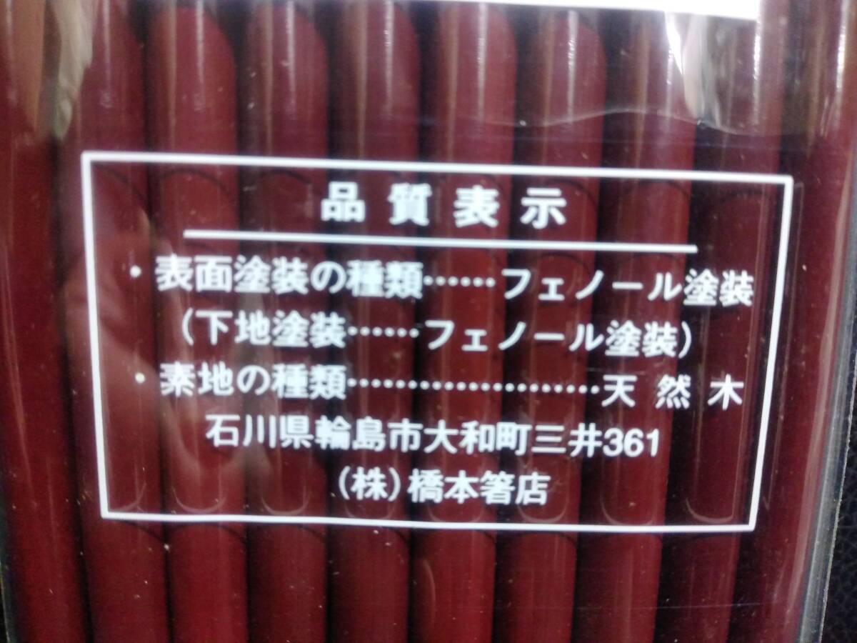 《食器》 日本製「特選 わじま塗箸:10膳入り」⑦ 長さ:約22.5cm 輪島塗 箸 天然木 未使用 長期保管品 收藏