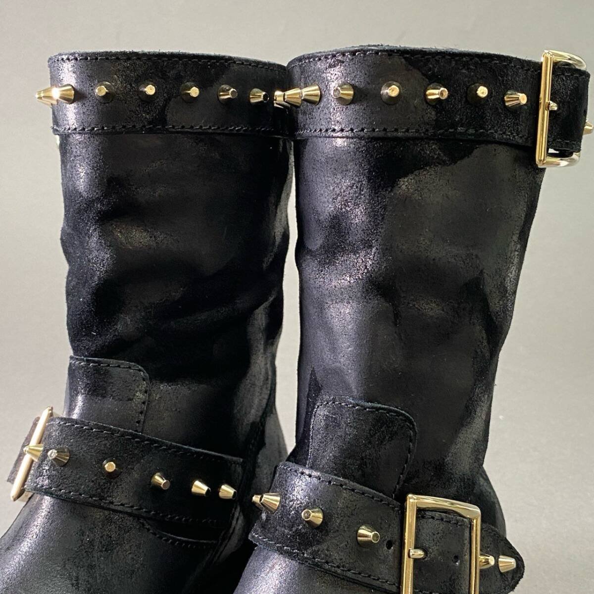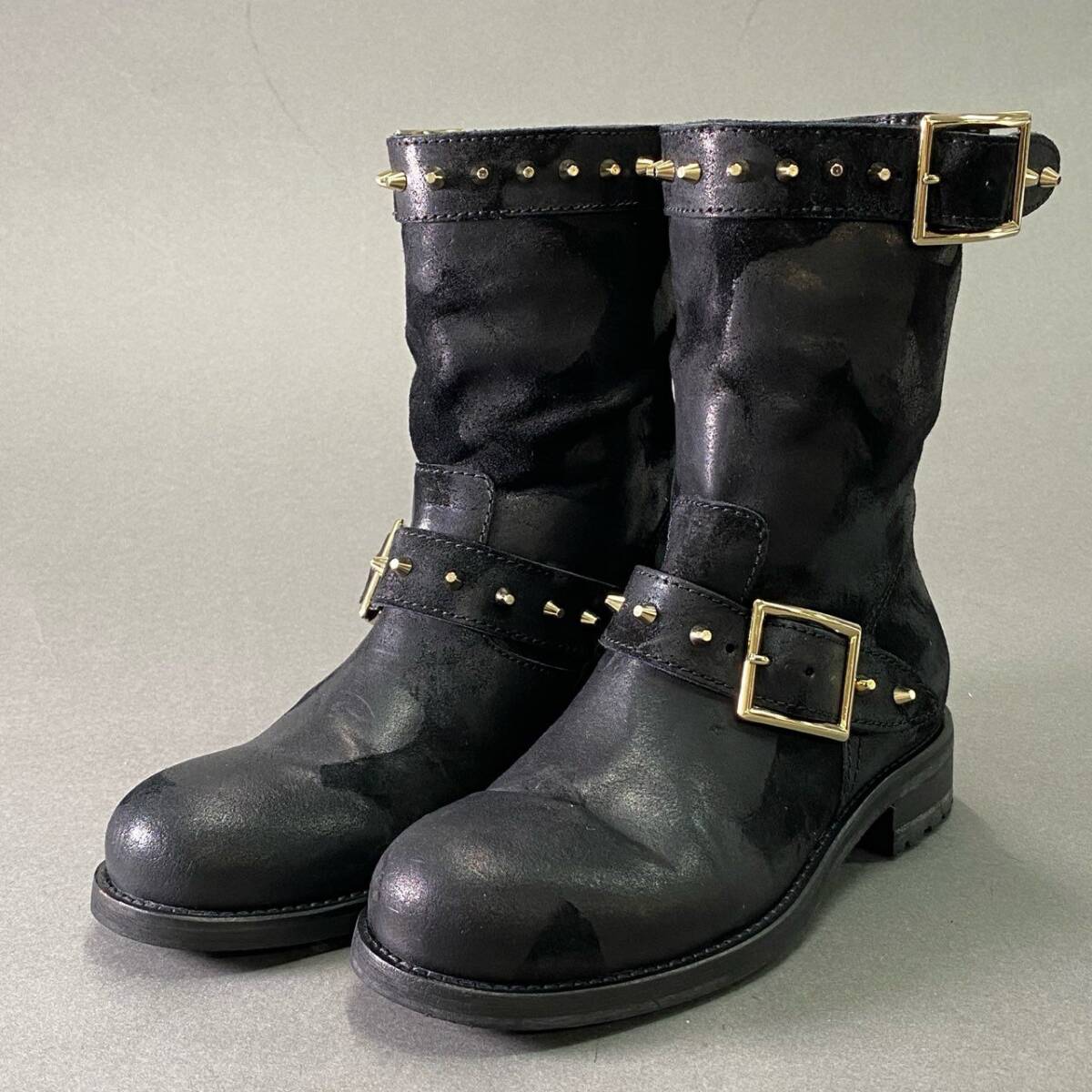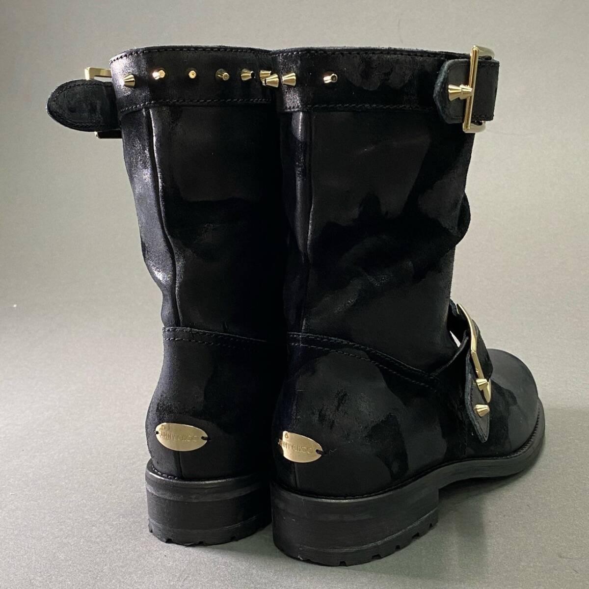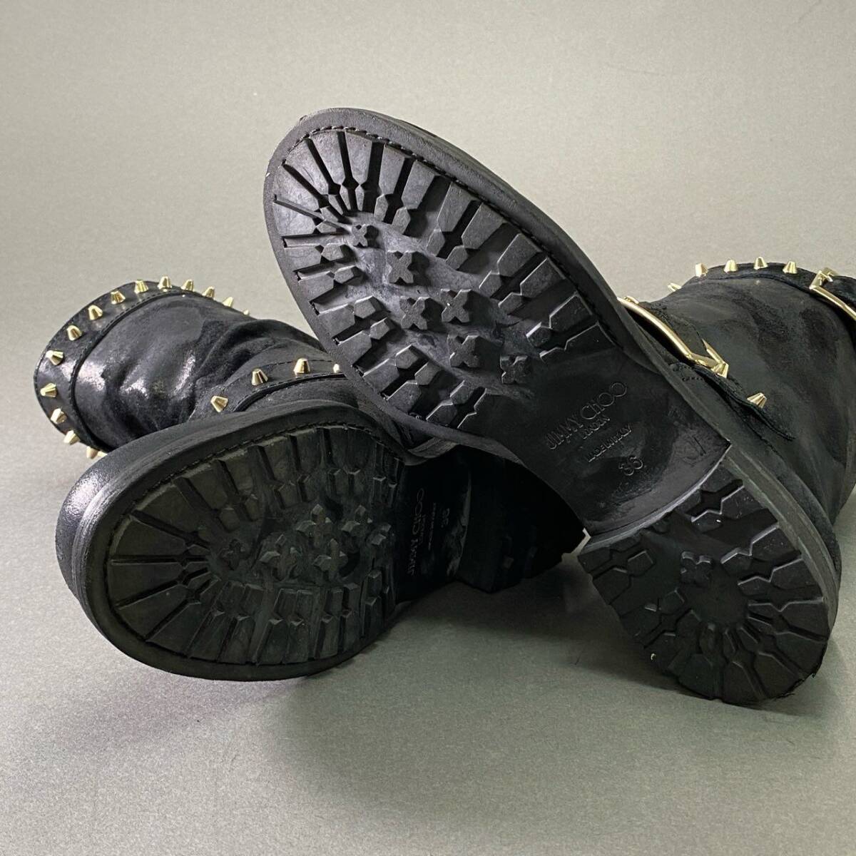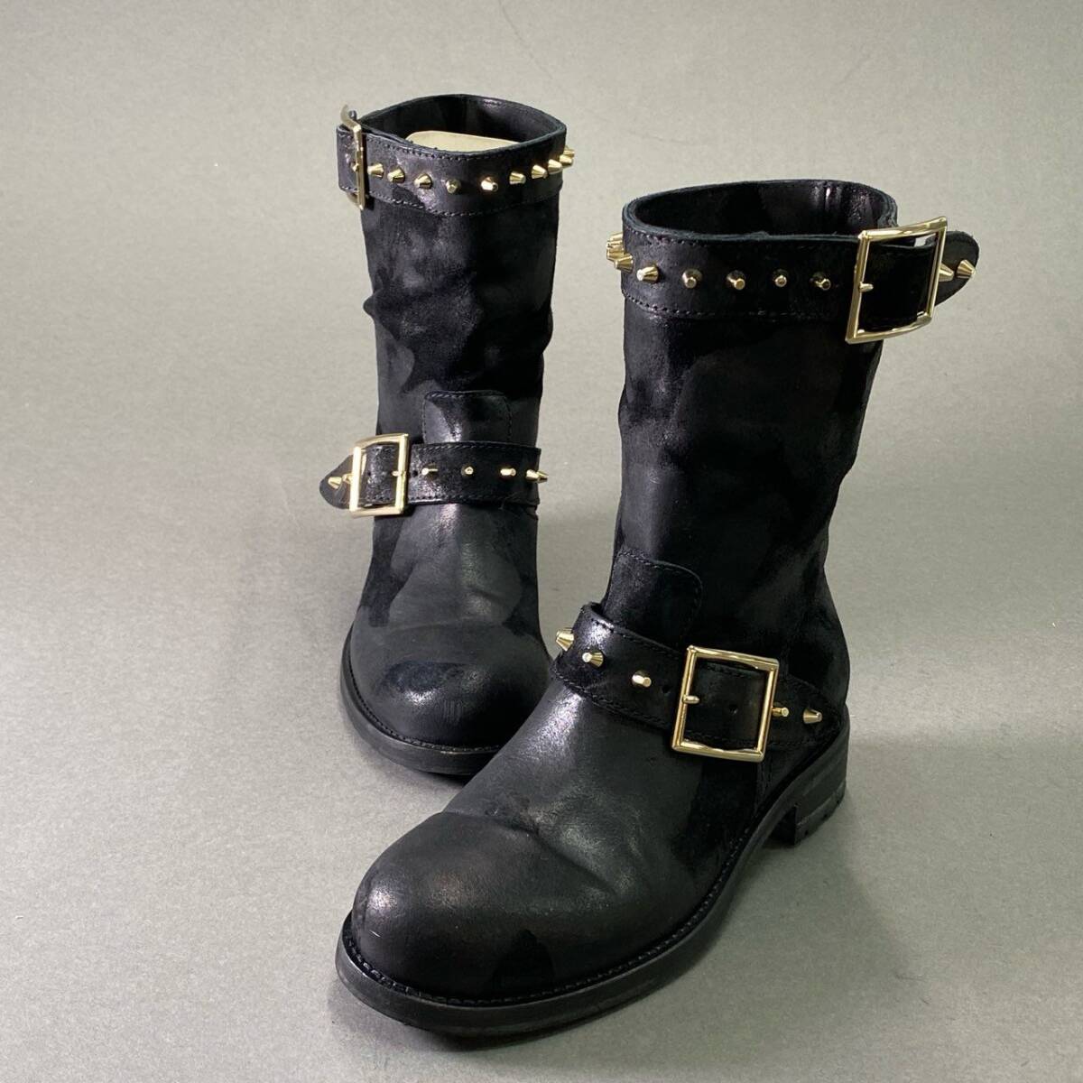 1d16 《美品》 JIMMY CHOO ジミーチュウ ワックス加工 スタッズバイカーブーツ 36 ブラック レザー シューズ イタリア製 收藏