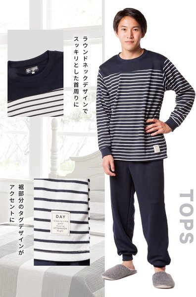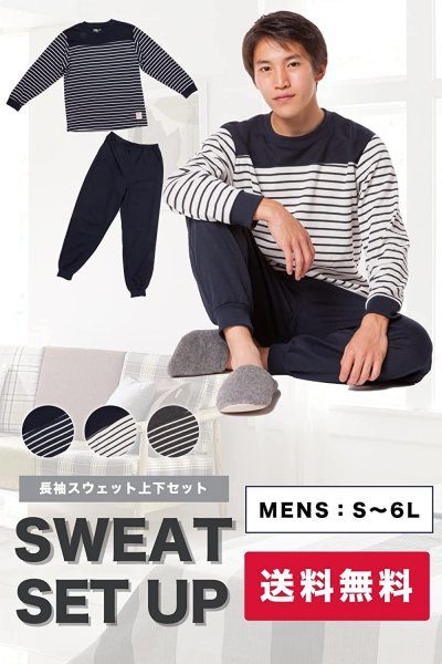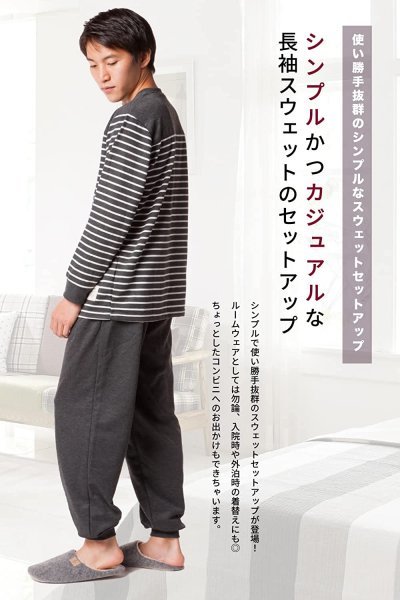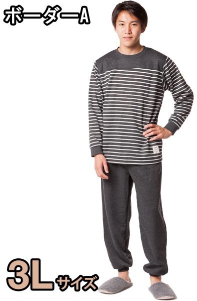 メンズ スウェット セットアップ 上下セット ルームウェア M L LL 3L 4L 5L 大きいサイズ ゆったり あったか パジャマ ボーダーA 3L 收藏