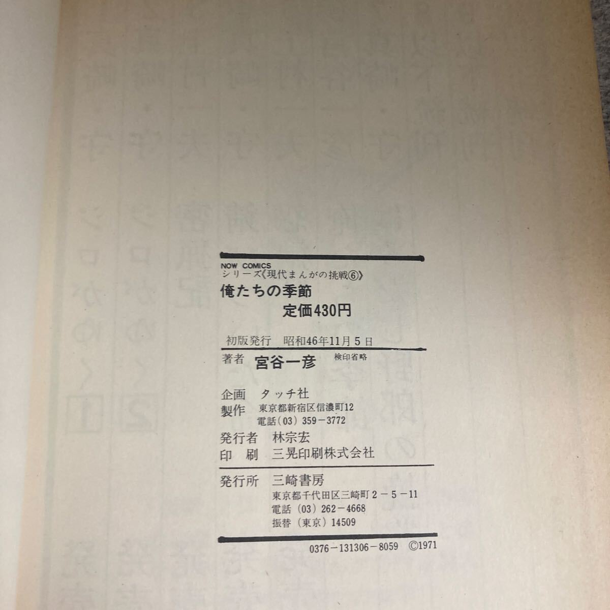 俺たちの季節 シリーズ〈現代まんがの挑戦⑥〉 宮谷一彦 昭和46(1971)年11月 初版発行 三崎書房 收藏