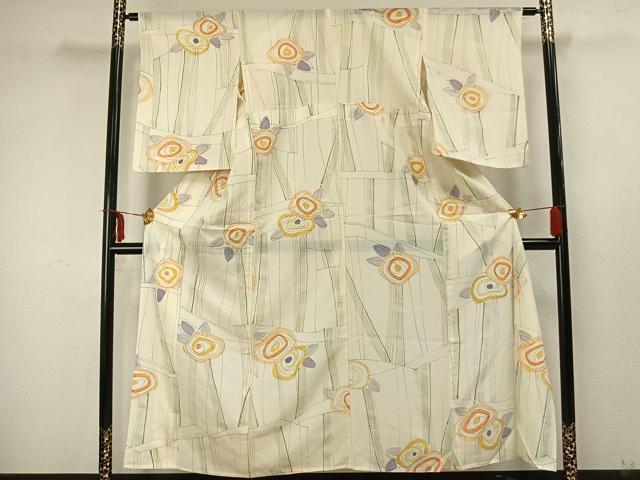 平和屋着物*夏物 小紋 絽 幾何学文 反端付き 正絹 逸品 AAAZ1312fy 收藏