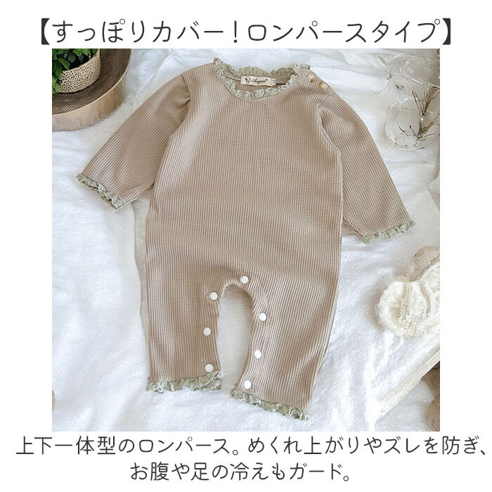 | 商品説明 | ・・【普段使いも特別な日もお任せ】 ・・1枚でコーデが完成☆着心地もばっちりな「ベビーロンパース」が新登場。 ・【おしゃれなナチュラルデザイン】 ・ぽこぽこなワッフル生地に、首や袖、裾にはフリルをプラス。思わず写真に収めたくなる可愛さ♪ ・【すっぽりカバー!ロンパースタイプ】 ・上下一体型のロンパース。めくれ上がりやズレを防ぎ、お腹や足の冷えもガード。 ・【着替えもおむつ替えもスムーズ】 ・肩のボタン、股下&足元のスナップボタンで簡単着脱。着替やおむつ替えの手間を軽減◎ ・【元気いっぱいのベビーにぴったり】 ・ゆとりのあるつくりに、程よいストレッチ性。ベビーの動きを妨げず、ノンストレス。 ・【デリケートな肌に触れても安心】 ・チクチク感せず、適度な厚みのコットン混紡素材。サラリと快適な肌触りでロングシーズン活躍。 ・【大切な日も可愛く彩るアイテム】 ・退院着や月齢フォトなどにもおすすめ!お友だち同士や兄弟・姉妹と、可愛くリンクコーデも♪ |