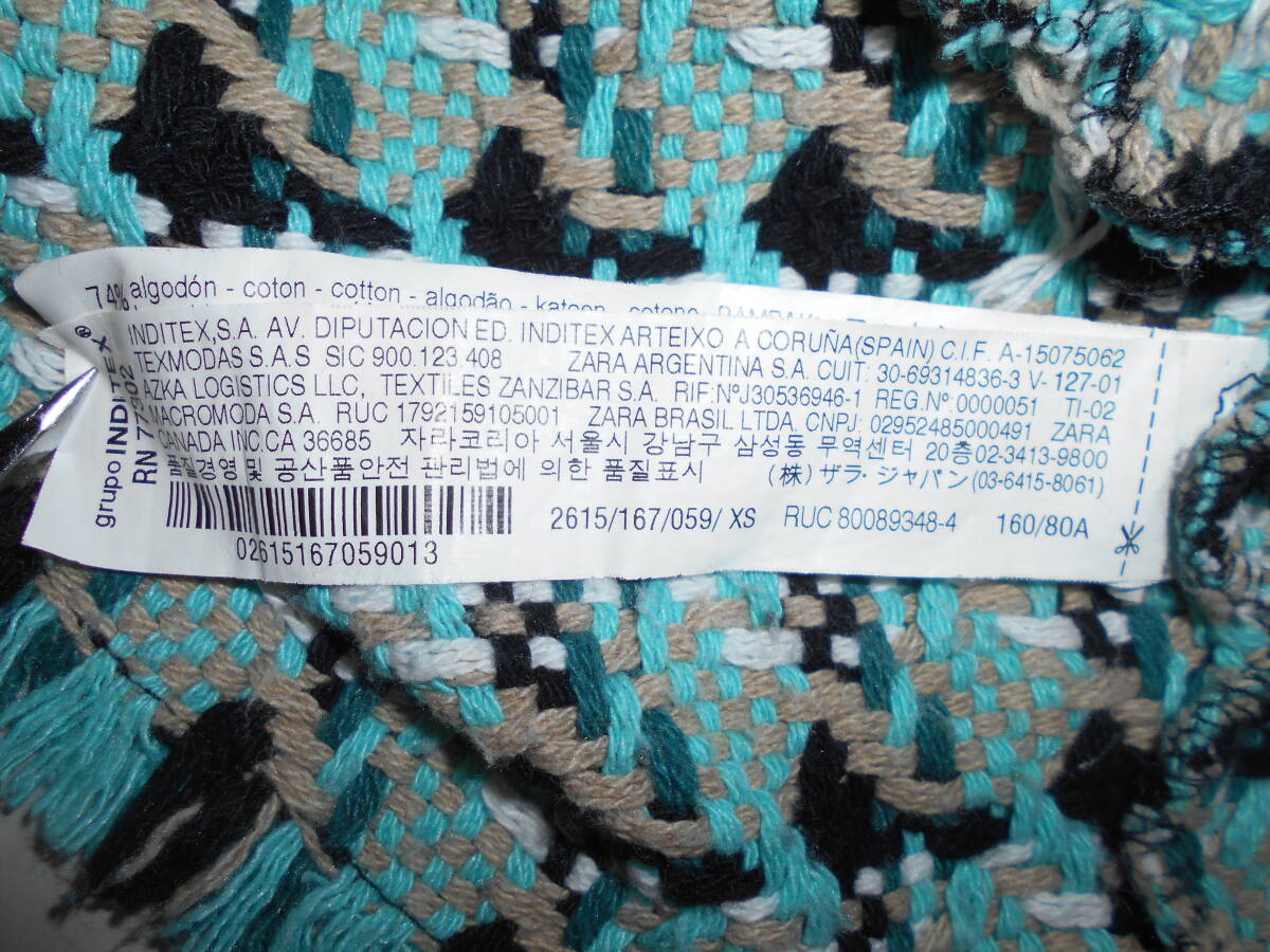 b1247◆ZARA ツイードジャケット◆ザラ レディース 2615/167/059 サイズXS ホワイト/ターコイズ系 編込みジャケット 短丈 7G 收藏