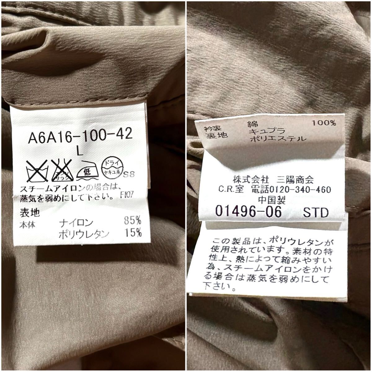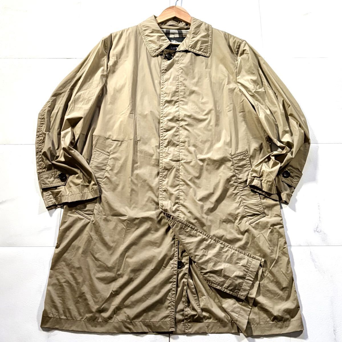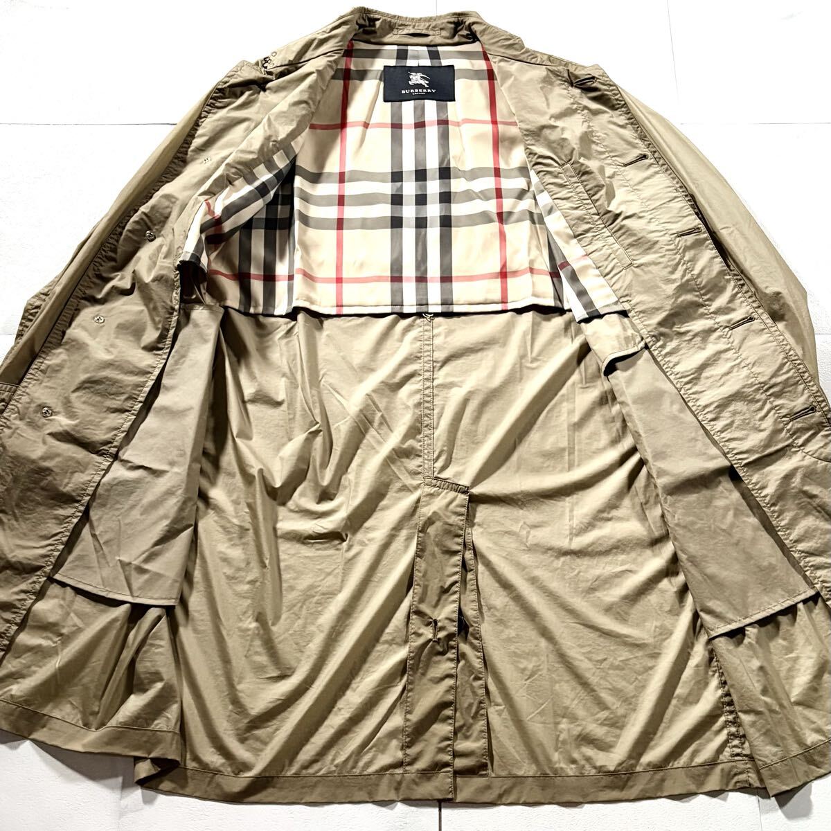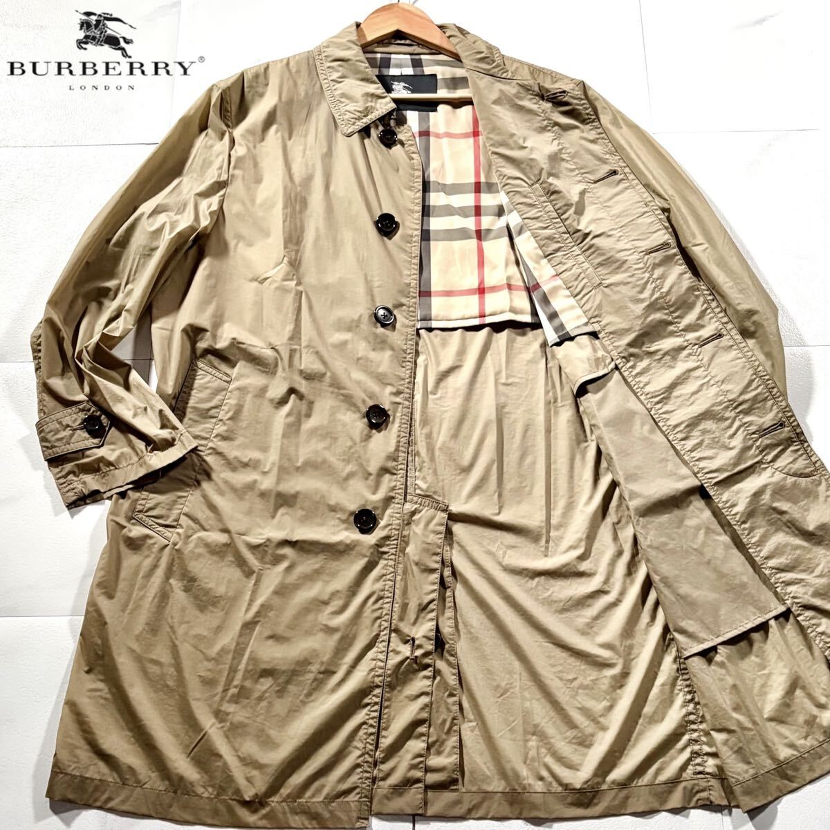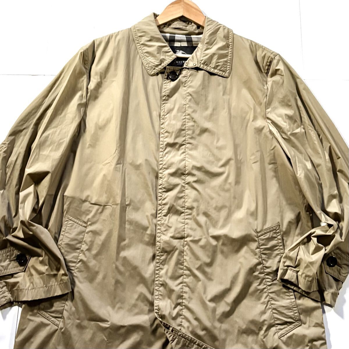 秋冬/Lサイズ●BURBERRY LONDON バーバリーロンドン ナイロン ステンカラーコート ストレッチ ロング丈 裏地ノバチェック総柄 ベージュ 收藏