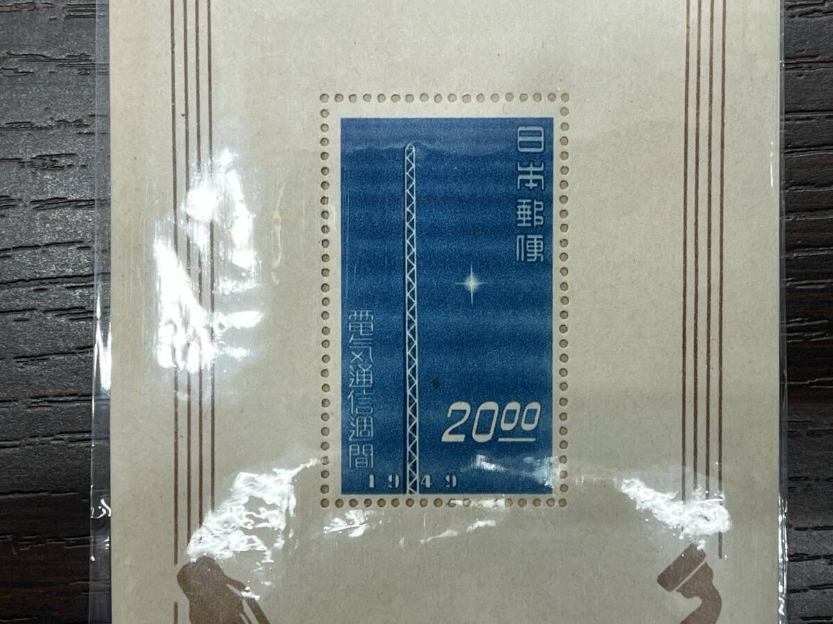 #1463 伸びゆく電気通信展記念 切手 1949年 20円 台紙付き 印刷局製造 日本郵便 コレクション アンティーク 現状品 收藏