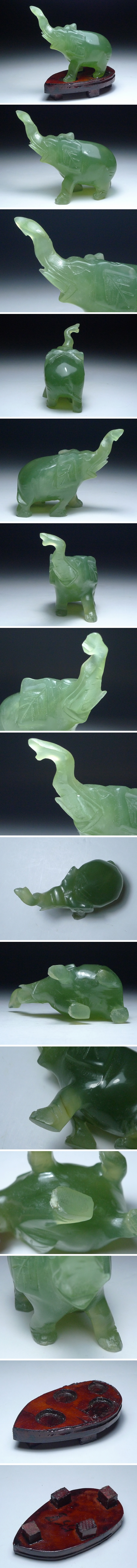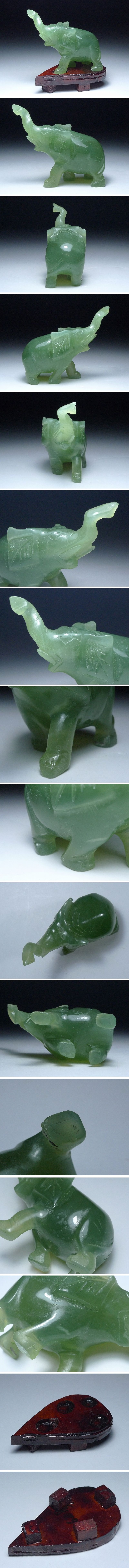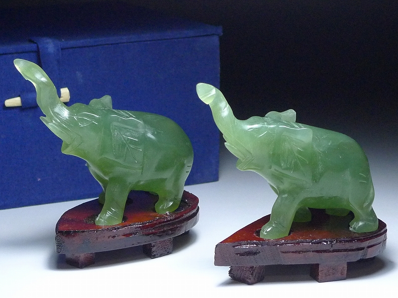 60GT06★中国古美術 玉石 象彫刻置物 ゾウ/2体セット 細密彫刻 木製台座付 置物/唐木/細密細工/総重量272g 收藏