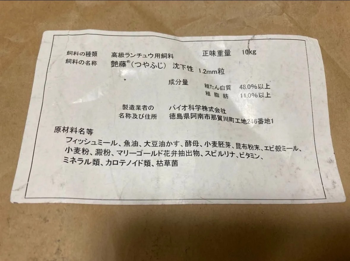 即発送 高級らんちゅう飼料 艶藤 1.2㎜前後の円柱形の沈降性ペレット 約500g 金魚の餌 收藏