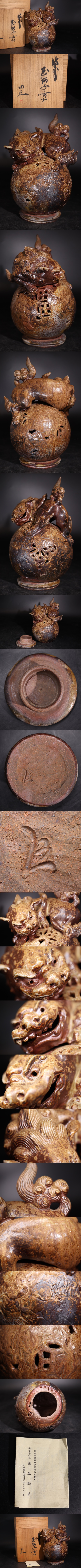 | 藤原陶臣 造 備前 玉獅子 香炉 栞 共箱付 / 備前焼 細工物 窯変 香道具 煎茶道具 手捻り 手造 .G2669 |