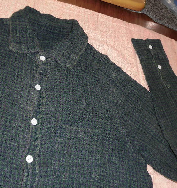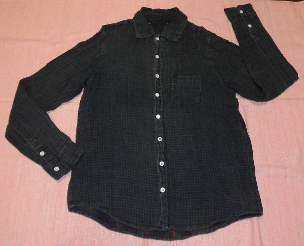 | よく着用しましたので、色ハゲが激しいです。 また、首の後ろのメーカータグを取っているかもしれません。 お安くどうぞ! ☆ サイズ表示はないのですが、Mくらいだと思います ☆ 濃い緑と紺のチェック柄 ☆ 実寸は、身丈68センチ、肩幅36センチ、袖丈61センチ、 脇下の幅46センチ、裾幅47センチ ☆ 綿100%、ダブルガーゼのような質感 ☆ ボタン開閉 ☆ 胸ポケット1つあり | ||