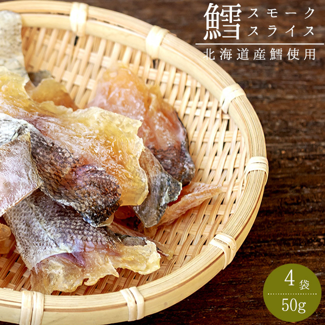 鱈スモークスライス50g×4袋【北海道産鱈使用】タラの珍味 乾物ちんみ【たらの燻製 くんせい鱈】【メール便対応】 收藏