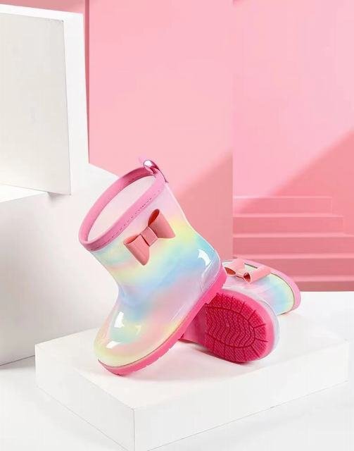 雨靴 子供 子供靴 レインシューズ レインブーツ リボン 虹 レインボー 長靴 滑り止め キッズ ショートブーツ レインボー17cm 收藏