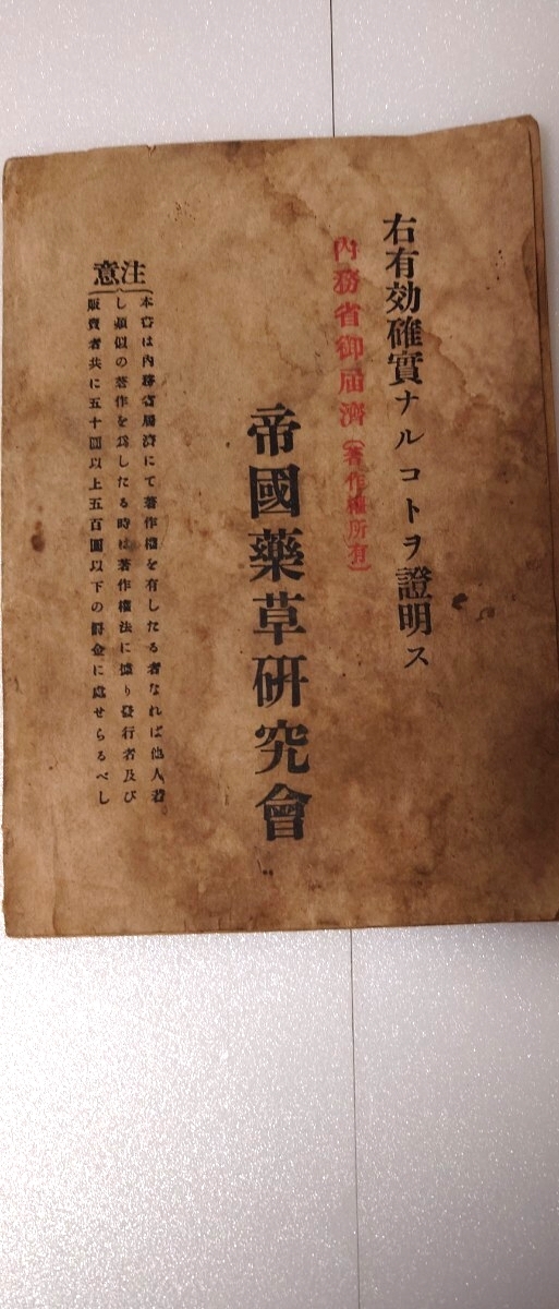昭和9年(1934)10月発行。帝國薬草研究會による貴重な薬用植物図鑑です。