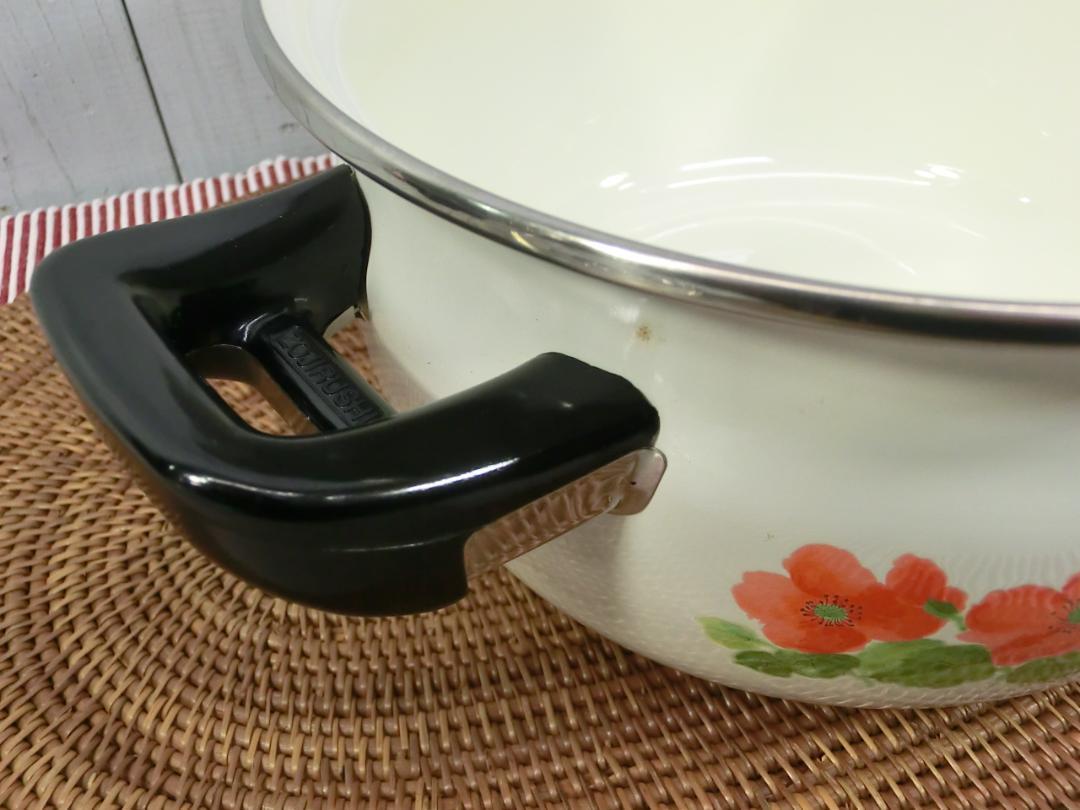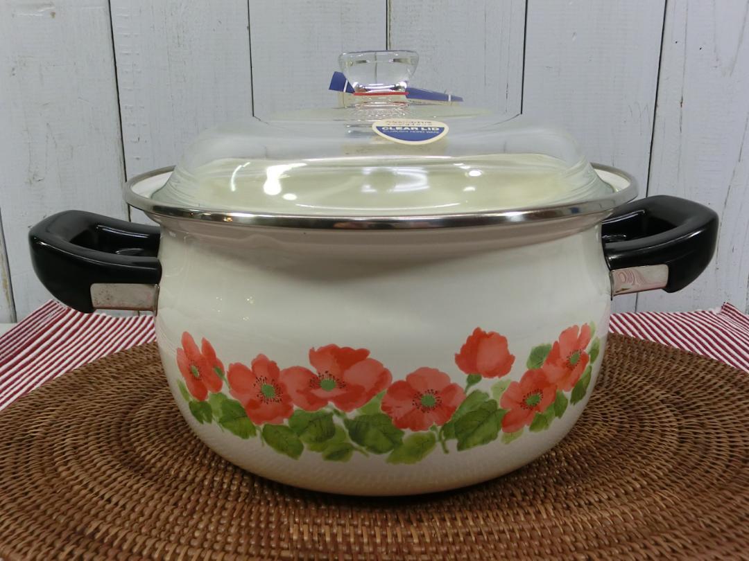 未使用品 象印 ホーローウェア ホーロー ほうろう鍋 両手鍋 20cm お玉つき 昭和レトロ ルージュポピー ヴィンテージ 当時物 P30619 收藏