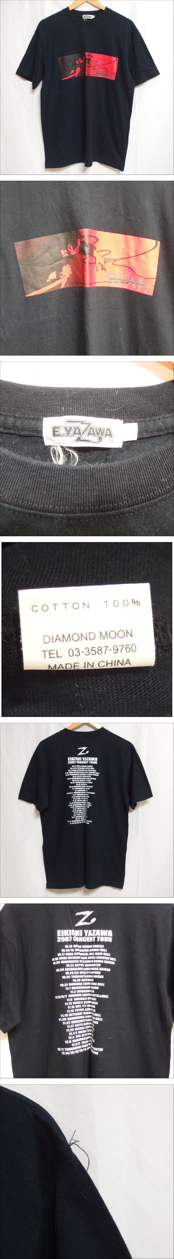 DIAMOND MOON製 メンズ 半袖Tシャツ【EIKICHI YAZAWA CONCERT TOUR 2007 「THE REAL」】ブラック・サイズL◆USED | |||